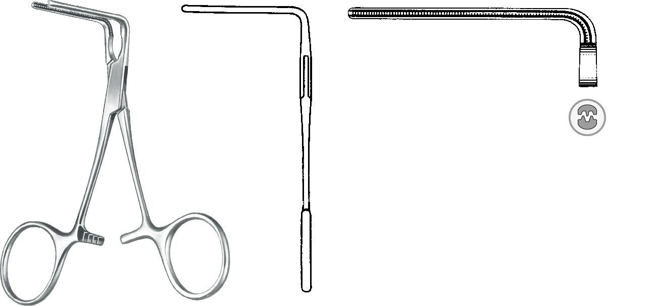 Original KLS-Martin ATR.-KLEMME, DE BAKEY, 90° GEW., 10 CM