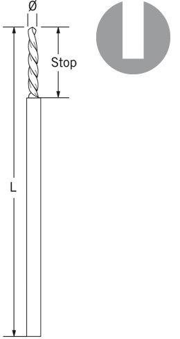 25-448-12-91 ~ Vorbohrer 1,3x61mm, 12mm Stop, O-Schaft ~