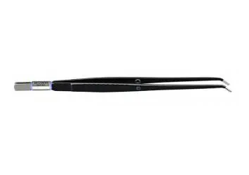 605-058 ~ Bipolare Pinzette, gewinkelt, 195 mm, 8 mm x 2 mm, Karo Riffelung ~