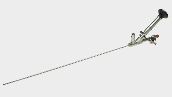 8702524 ~ URETERORENOSKOP 5 6 7,5CH NL 430MM semi-rigide, mit seitlich versetztem Okulareinblick, Arbeitskanal 1x4 (2x2,2)Ch, atraumatisch geformte Spitze, GL 599mm, Faserbildleiter ~