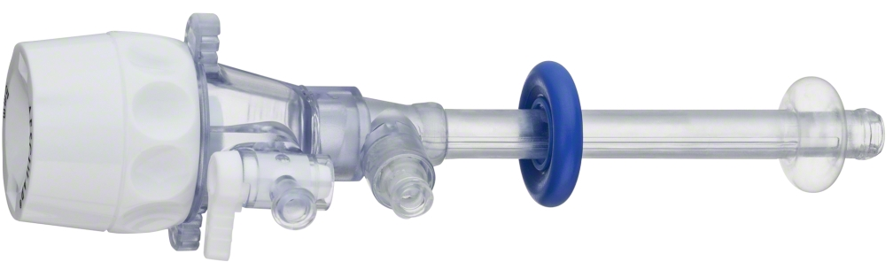 Einwegtrokarhülse mit Ballonfixierung und Gegendruckring