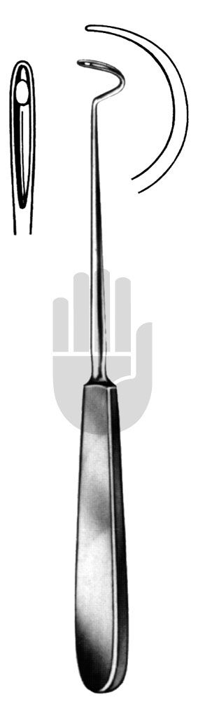 Deschamps Unterbindungsnadel, stumpf, rechts gebogen, für die linke Hand, 21cm