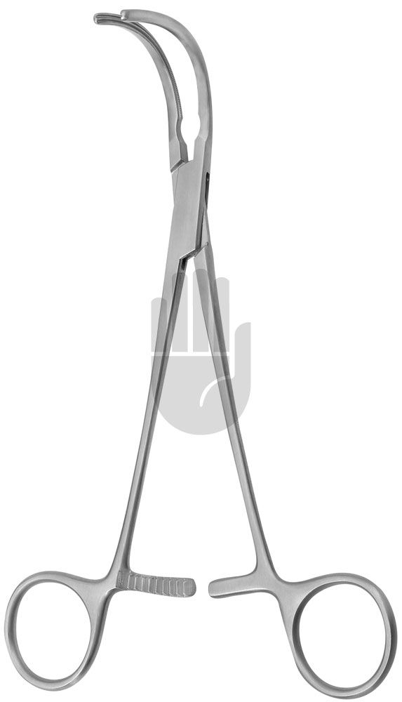 HB3962-02 ~ Glover Mehrzweckklemme, gebogen, 86mm, 24,5cm, DeBakey Zahnung ~