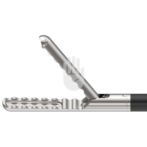 Hi-Class-Med - ENDOSCOPY Monopolares Instrument, Ø 5 mm, Arbeitslänge 450 mm, Atraumatischer Greifer mit gewellter Zahnung und Reservoir, einfachbeweglich