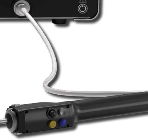 Handstück. Mit einem Knopfdruck können die Operateure zwischen